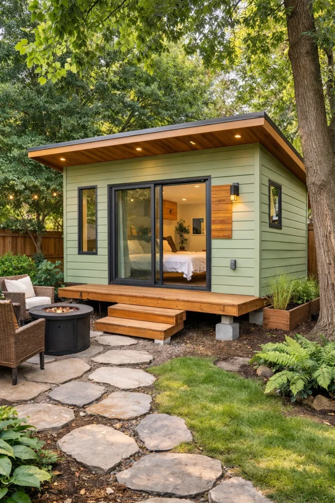 - Key Benefit: Features include a flat roofline and extensive use of low-maintenance, dark-stained wood siding (like shou sugi ban). The minimalist aesthetic maximizes natural light and blends beautifully with any modern primary residence.