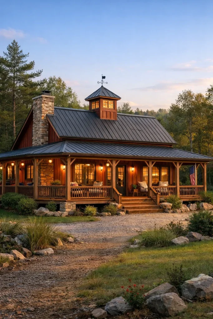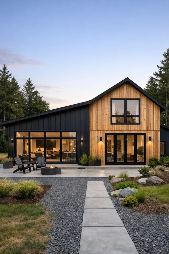 - Vertical metal or board-and-batten wood siding (the rustic barn feel).