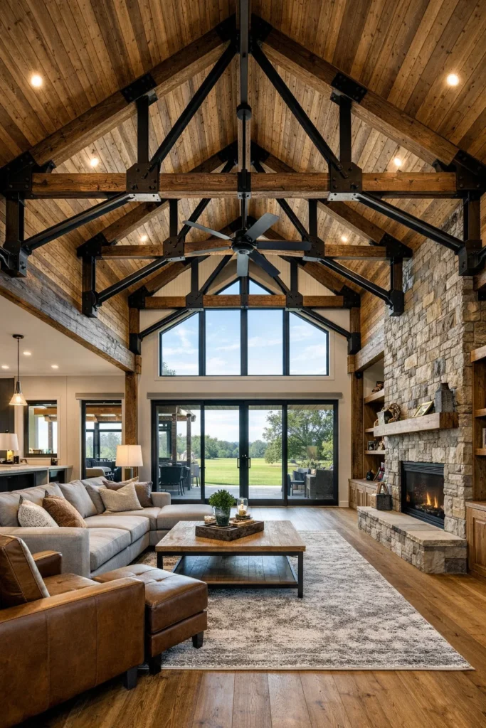 - The Indoor-Outdoor Seamless Barn: This design focuses on dissolving the boundary between interior and exterior. It utilizes enormous bi-fold or sliding glass doors, extending your vaulted living area directly onto a covered patio, making your entire home feel connected to nature.