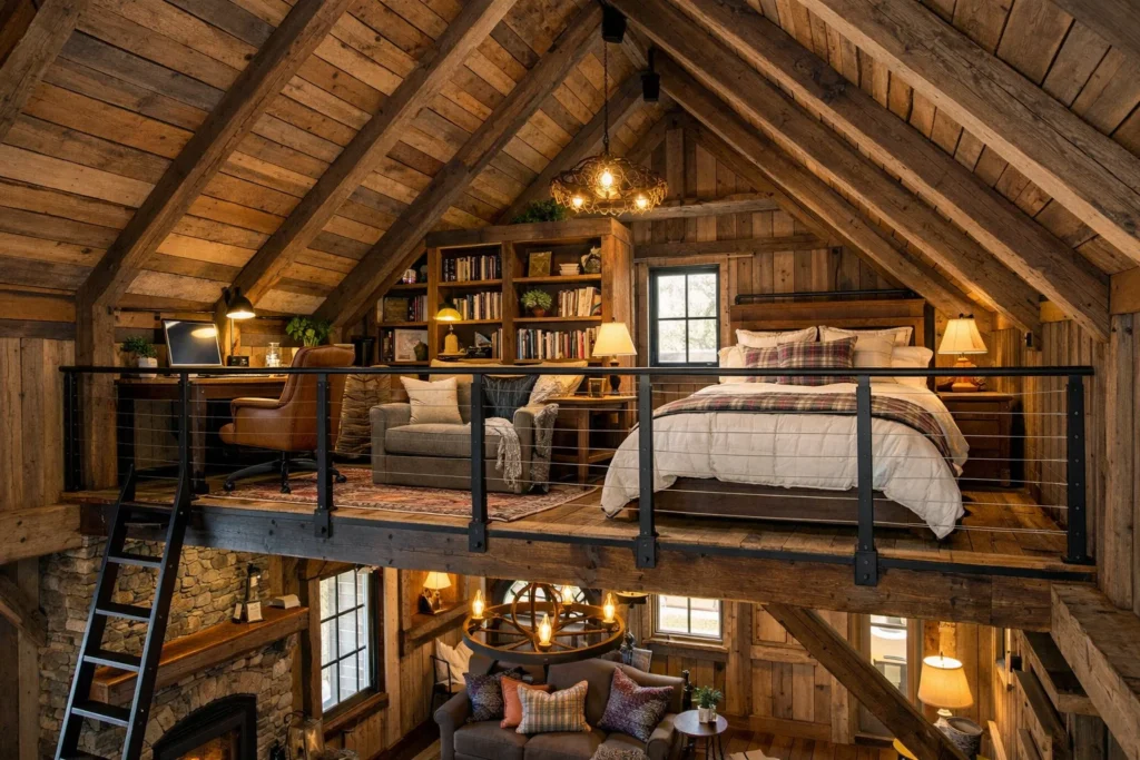Lofts transform vertical space into functional areas ideal for an office, reading nook, or guest bedroom. It’s one of the signature features of compact barn homes.