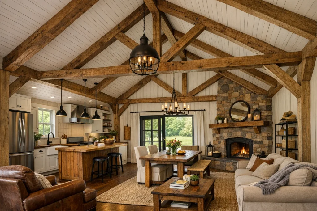 These aren’t farm barns turned into homes, they’re architect-designed layouts that capture rustic charm with a modern twist: vaulted ceilings, open-concept living spaces, and optional lofts or garages.
