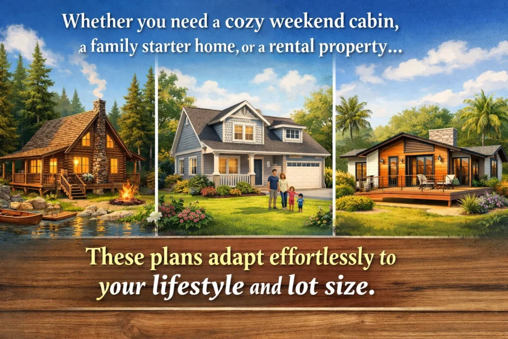 Whether you need a cozy weekend cabin, a family starter home, or a rental property, these plans adapt effortlessly to your lifestyle and lot size.