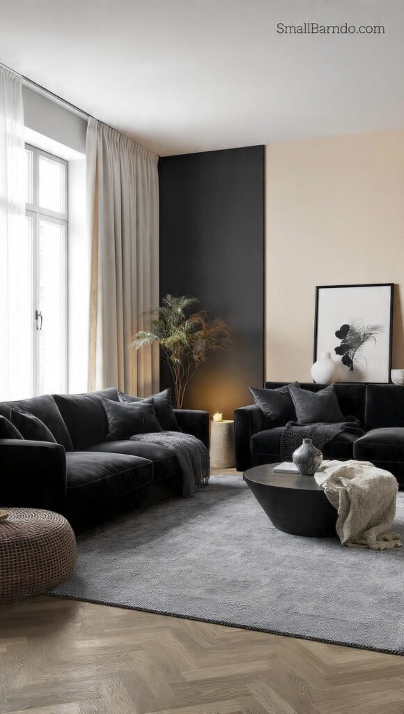 • Charcoal Accents: Darker greys can be used in rugs or pillows to provide a “weighty” feel to the seating area.