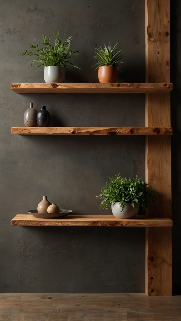 • Live-Edge Wood Shelving: Use floating shelves that retain the natural curve of the tree bark.