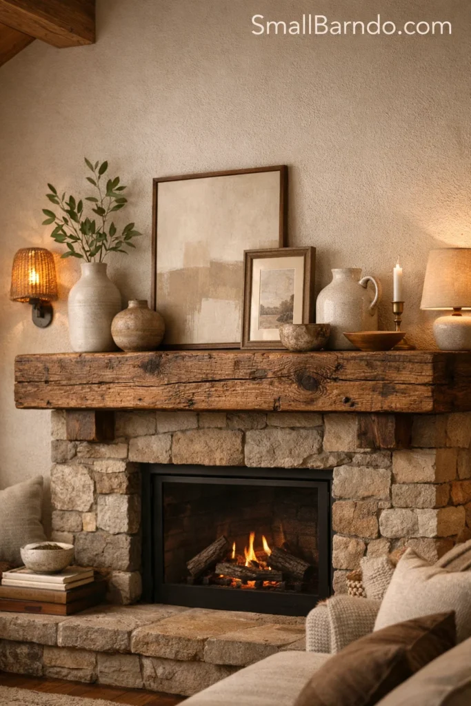 • Reclaimed Wood Mantels: If you have a fireplace, swap a painted mantel for a thick beam of reclaimed wood. It brings history and immediate warmth to the room’s focal point.