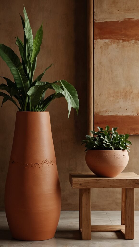 • Clay-Toned Walls: Consider lime-wash paint in a terracotta or clay shade to give your walls a velvety, stone-like texture.
