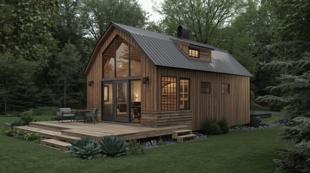 A tiny house barndominium is essentially a compact barn-style home, typically ranging between 600–900 sq. ft., built for modern living. Unlike mobile tiny homes, these structures are permanent, often framed with wood or steel, and feature durable roofing, open interiors, and customizable floor plans.